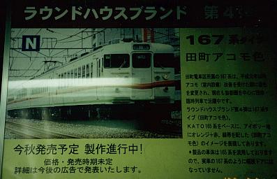 最近、再生産品が少なくて、欲しい人に行き渡らないなんて、非難もあるようだけど、僕はやっぱりKATO製品好きだなあ。TOMIXとの競作の場合もその時の出来具合によるけど、やっぱり、KATOをチョイスすることの方が多いかな。で、今回なんだけど、製品化要望や意見を自由に書きこめるノートがおいてあったり、下半期に発売される製品についてのアンケートをやっていたり、KATOはKATOなりに頑張ってるようです。私も製品化要望書いてきました。何を要望したかは内緒。
