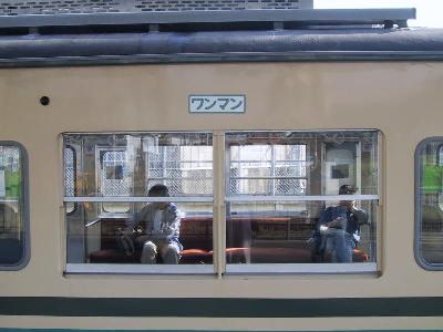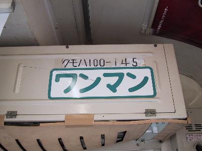 | 車内のプレート | 車内の先頭部は残念ながら手書きです。 プレートは盗られてしまったのでしょうか?だったら許せませんね(怒!) |