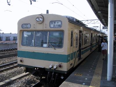 103系の大きな違いは、正面窓が下方向に大きいことです。 |