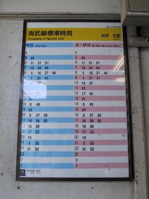 | 浜川崎駅 こちらは南武支線の駅になります。 | 時刻表。朝夕の通勤時間帯は3〜4本ありますが、 日中は1〜2本という超ローカル線です。 終電が11時前というのもこんな首都圏近郊では珍しいです。 |