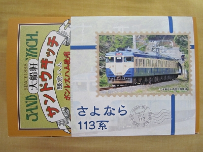特急しおさい 車内限定販売 さよなら113系 サンドウヰッチ 500円 8月19日〜25日限定の掛紙 |