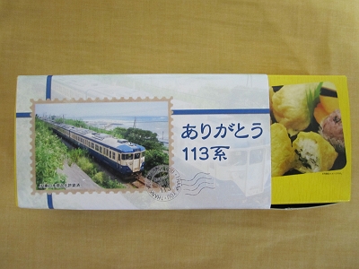| 特急しおさい 車内限定販売 ありがとう113系 駅弁いなり 500円 8月5日〜11日限定の掛紙 |
