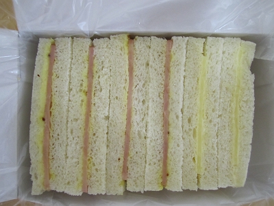 | 大船軒 サンドウヰッチ | 中身です。ハムサンド4つ、チーズサンド2つです。 |
