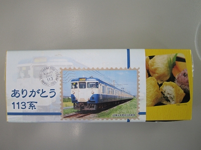 特急しおさい 車内限定販売 ありがとう113系 駅弁いなり 500円 8月19日〜25日限定の掛紙 |