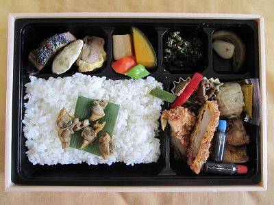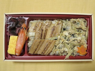 東京のアナゴ、千葉のあさりの両方が入った弁当です。 |