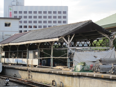 | 両国駅 臨時ホーム 駅名標 | 現在は閉鎖されている5番線、6番線ホーム 「5」の数字が見えています。 |