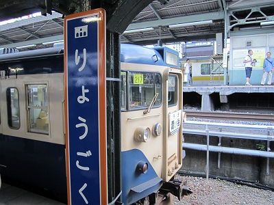 | 両国駅 ホーム 乗り場ステッカー | りょうごく 駅名標と113系 |