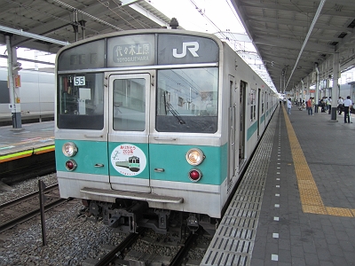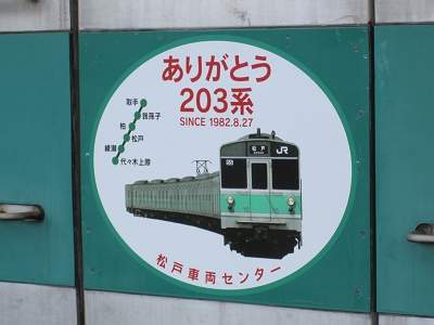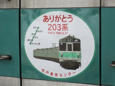 2011年9月末で常磐緩行線の203系が引退することになった。地下鉄千代田線乗り入れ用の常磐緩行線でしか使用されず、JRの中では地味な存在ではあったが、301系以来のアルミ車体の採用など他の車両にはない特徴を持ち合わせていた。引退後はインドネシアで第二の人生を送る予定になっている。その引退のせまった203系マト55編成に9月1日よりありがとうヘッドマークが掲出された。