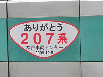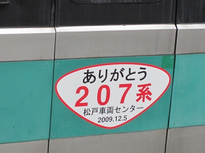 | 2009年12月5日に207系さよなら運転が行われました。 取手 2009/12/05 |