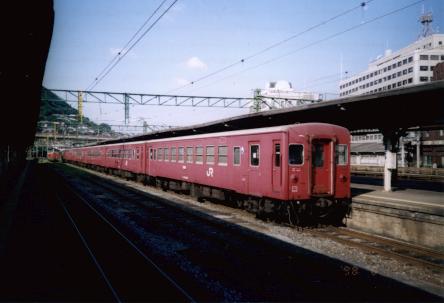 さて、九州での日程も早、5日目になった。今日は筑豊本線の客車列車を仕切ることから始まる。まずは折尾へいく。博多からの普通列車は新型の813系である。折尾から一つ先の東水巻まで客車を迎えに行く。DD51に引かれた6両編成の50系がやってきた。通勤時間帯のため車内は席が埋まるくらいの乗車率だ。このまま終点の門司港までゆく。筑豊本線は篠栗線とともに電化の予定だから、この客車列車もいつまで残るか時間の問題である。