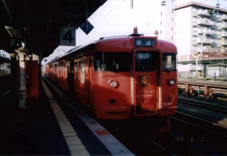 98年夏、懸案だった、宮崎空港線を仕切るため、九州鉄を企てる。よくよく考えると、今年の4月に北九州のモノレールが小倉駅まで乗り入れたし、島原鉄道も、雲仙普賢岳の火砕流の被害以来、不通だったのが、全線開通しているし、しかも、今後、しばらく、九州では新線開業予定がないので、鉄する期は熟していた。切符は今年4月に新登場し、使い勝手が非常に悪くなった周遊切符を使う。だいたい、まず、この周遊切符を買うのにてこずった。海浜幕張の駅で買ったのだが、窓口の駅員がよく分かっていない。別に、複雑経路で頼んだわけではないのに、買うのに20分もかかってしまった。周遊切符は行き券、ゾーン券、帰り券の計3枚1組の切符だが、ゾーン券はどのゾーンでも一律5日間しか有効じゃない。しかも、往復は乗車券のみ、急行、特急、新幹線利用の場合は別途、料金が必要になる。まったく、何のメリットがあってこんな使いにくくしたんだ。前の九州ワイド周遊券の方がよっぽどよかったよ。だいたい、5日っていうのが、全然足りない。行く日と帰る日を抜いたら、中3日じゃないか。九州中を3日でどう見ろって言うんだろうか?ということで、本当のところ切符をどう