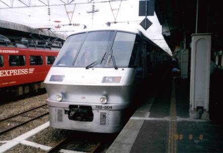 長崎では朝食にする駅弁を買って、10分後の「かもめ10号」に乗って諫早まで折り返す。リニユーアルされた783ハイパーサルーンには初乗車だったが、乗車時間は18分なので、慌ただしく朝食を取っているうちに到着してしまった。諫早からは、大村線で佐世保へ。大村線では200系気動車は初仕切りであったが、車内は混んでて大村まで立ちであった。大村線はおだやかな大村湾に面して走っていくので、とても眺めがよく、九州の中でもお気に入りの線である。ハウステンボスを過ぎ、早岐では今朝、肥前山口で別れた佐世保行「あかつき」と再会を果たしたあと、終点の佐世保につく。佐世保でも、すぐに折り返しの「みどり」で博多まで戻る。早岐で方向転換のため、早岐までは後ろ向きで進む。博多では少々時間があいたのち、お目当てのソニックに乗る。どんなもんかと思えば、実にふざけた車両だ。遊び心はわかるけど、あんな感じでは車内で落ち着けやしない。だいたい、「ハウステンボス」や「にちりんシーガイヤ」みたいなリゾート特急ならわかるが、博多−大分なんてビジネス特急なんだからどうかと思うよ。でも、早い事は早いな。小倉をでると、あっという間に大分であ