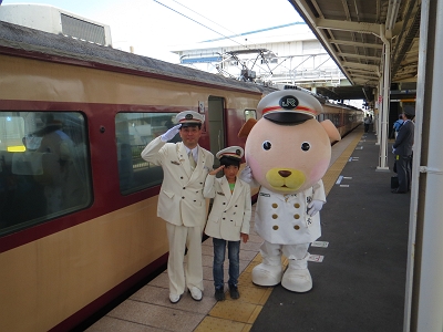 | 千葉方は団体幕です。 | 駅長犬と本物の駅長とちびっ子1日駅長 |