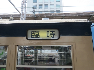 | 側面方向幕は「臨時」です。 | ファンが持ってきた種別札がかかっていました。 |