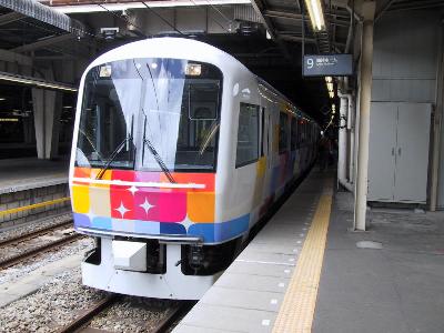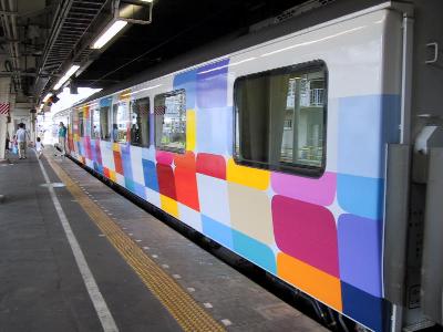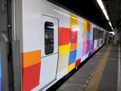 | どうですか、このカラーリング。見てるだけでも楽しくなりますね。 | ホーム反対側からです。 |