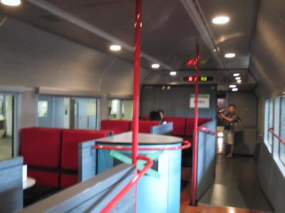 | 車内、ラウンジカーの様子 | こちらは普通座席の車内。 |