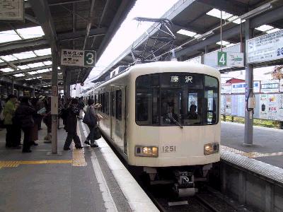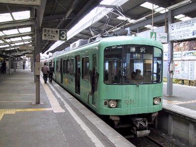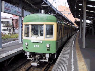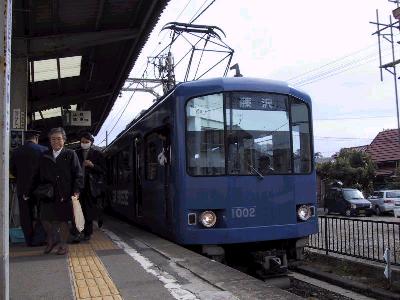 | 最新型の2000形 11月オリジナルの銀杏模様の方向幕にも注目 | 1500形 江ノ島駅 |