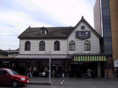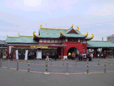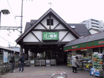 | 片瀬江ノ島駅に到着しました。龍宮城のような駅舎で有名な駅です。 | そして、こっちが、江ノ電の江ノ島駅。 小田急片瀬江ノ島駅からは徒歩5分程。 |