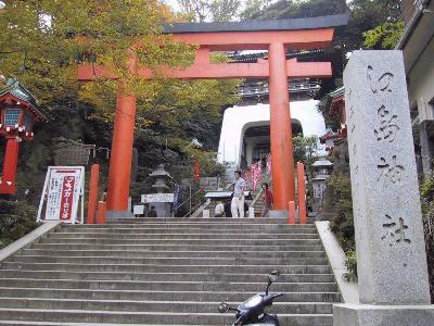 さて、鎌倉から一旦、引き返す。せっかく、来たのだから、江ノ島にも行ってみました。でも、もう、何十回も訪れている場所なので、階段の下までしかいきませんでした。(笑)。ここの階段はまじできついっす。まあ、エスカー乗ればいんだけどね。エスカーとは、江ノ島の頂上までいくための有料のエスカレーター。はっきり言って、有料のエスカレーターなんてここ以外では見たことありません。(笑)。