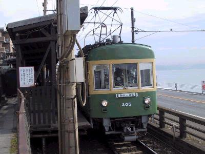 | 鎌倉高校前に停車中の305 | 海岸沿いのホームにて... |