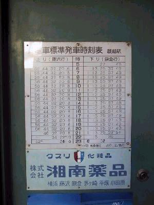 | 時刻表 行き違い設備の関係で、見事にまで12分ヘッドが貫かれている。 実際は、どの電車も混雑していて、増発・増結をしたいのだろうが、 現状設備では、ちょっとそれは難しそうである。 |