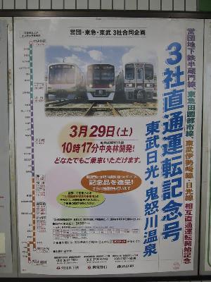 | 早速3月29日に夢の中央林間発東武日光、鬼怒川温泉行が 運転されます。今後、こういうイベントも多くなりそうです。 |