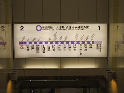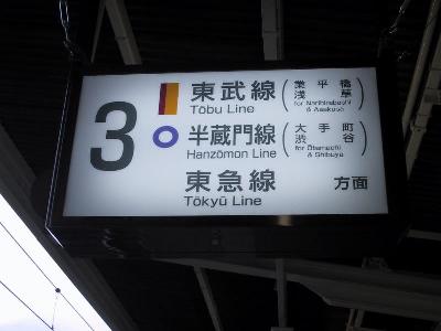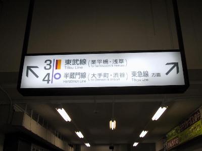 東武の駅にも、半蔵門線、東急線方面との表示されています。 |