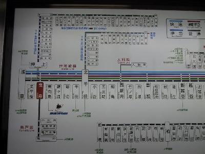 | 東武30000系車内の路線図 | 英語の表記も併記されるようになりました。 |