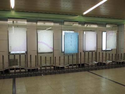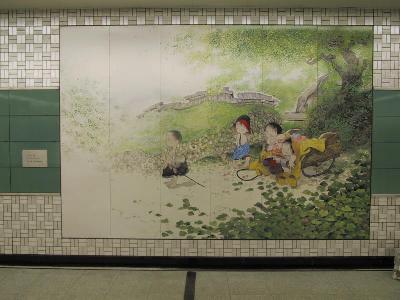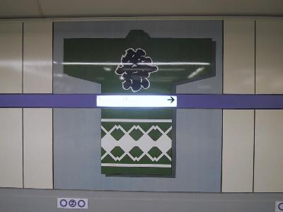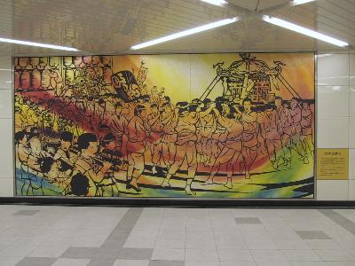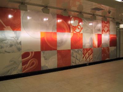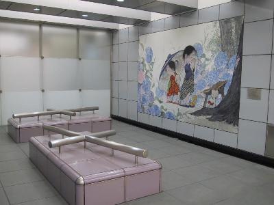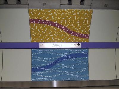 | 着物の柄の「江戸小紋」をモチーフとしたコンコースのオブジェ | 壁画もあります。 |