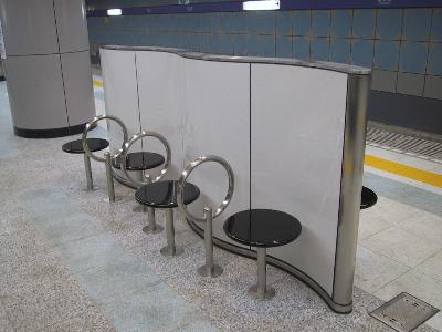 | コンコースには浮世絵のパネルがあります。 | ホームにあるおしゃれなベンチ |
