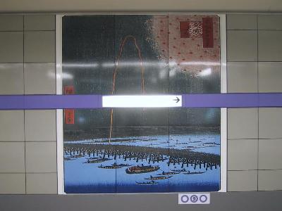 | 駅名標も浮世絵になっています。 | A線、B線で2種類あります。 |