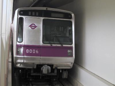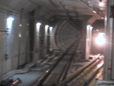 | 今まで終点だった水天宮前から先ができました。 光ってしまってよく見えません。(汗;) |