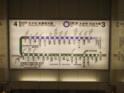 | 券売機上の運賃表も変わりました。 | 永田町駅の路線図。やっと半蔵門線も他路線並に長くなりました。 |
