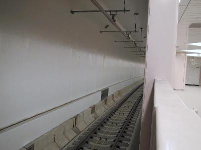 | 当面はこのように留置線として使用されるようです。 | 清澄白河方(豊洲方)はこのような壁になっています。 将来的にはここから、東陽町を経由して豊洲まで延伸される 計画になっています。 |