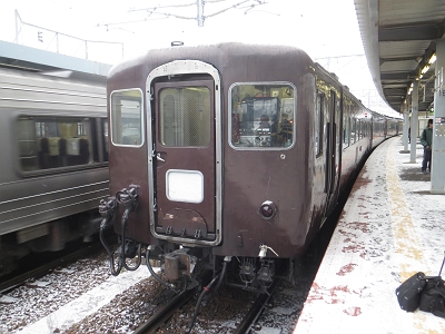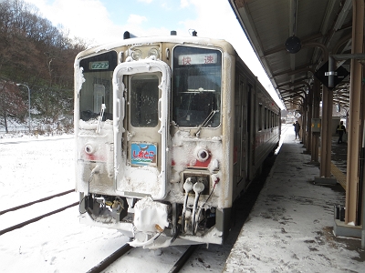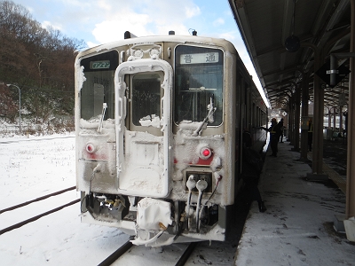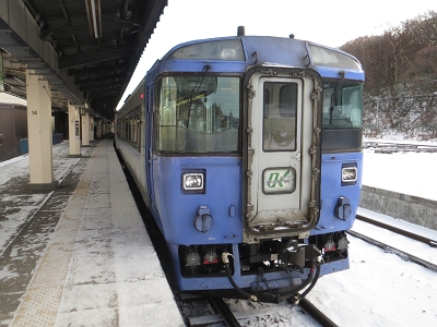 | 網走に到着しました。 後方にはすごい雪が付着しました。 | 先頭側には雪の付着はありません。 |