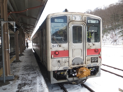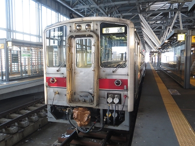 | 客車は14系です。 | 機関車が推進運転で入線してきました。 |