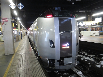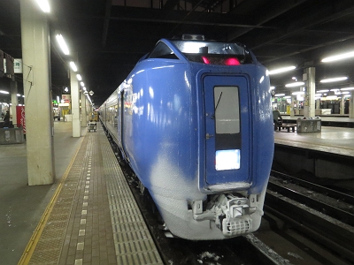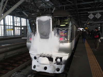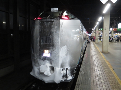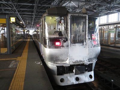 | 785系 スーパーカムイ19号 | 前面にはすごい雪が付着しています。 |