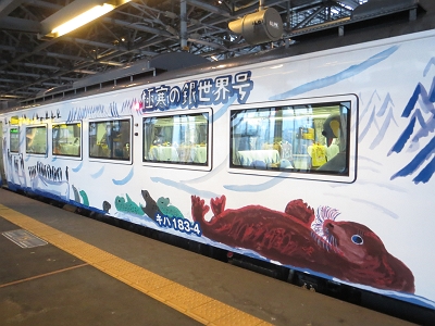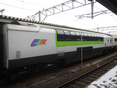そして、今回どうしても乗りたかった、ノースレインボーエクスプレス。車両不足の関係で、普段は、臨時のリゾート特急として運転されている車両が、臨時北斗の運用に入ります。5両編成なので、車内はとても混雑していましたが、札幌までのリゾート特急の旅を楽しみました。
