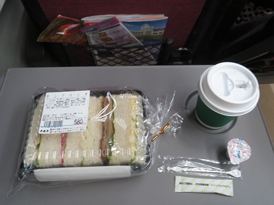 | 車内販売のサンドイッチとコーヒー | サンドイッチ |