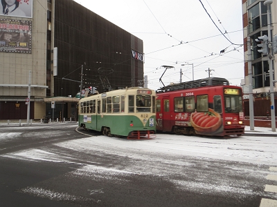 | 函館市電 3004号 | 812号と3004号のすれ違い |