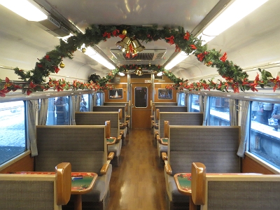 | 車内にはクリスマスツリーが飾られています。 | 大沼と駒ヶ岳 |