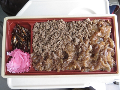 | 遠軽駅 かにめし 車内販売員に申し込むと遠軽で積み込んでくれます。 |