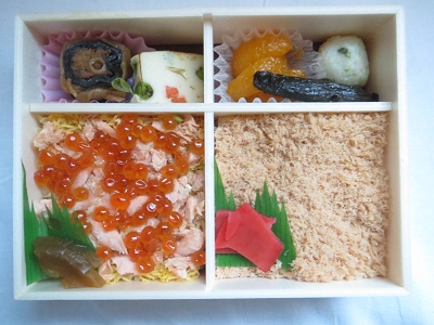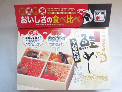 | 石狩鮭めし 今昔物語 | 左側が現在の中身、右側が昭和40年代の中身です。 |