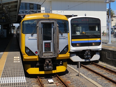 | 反対側には準急房総。イベント列車で付けるためのもののようです。 | 交換待ちのいすみ100形 |