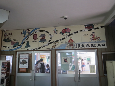 | いすみ鉄道 ムーミン列車のりば | 壁の反対側はJR大原駅入口となっています。 |
