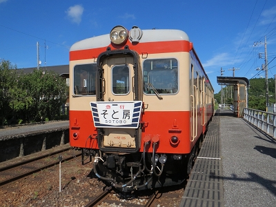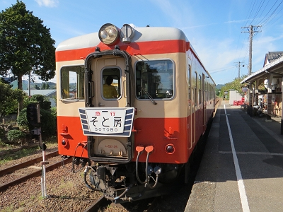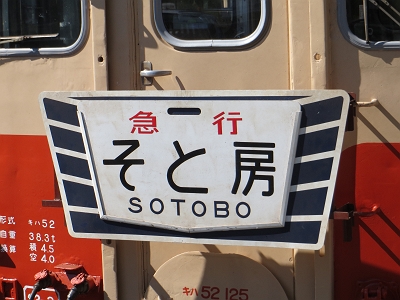 | ヘッドマークは日曜祝日はこの「そと房」。 土曜日は「夷隅」になります。今度は土曜日に訪れたいです。 |