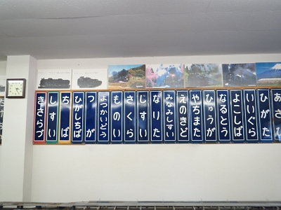 | 駅名標と大きな鉄道模型があります。 | 房総地区の駅名標 |