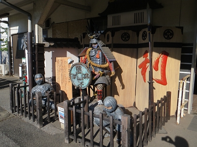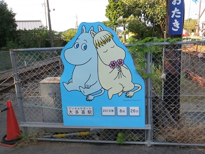 | 記念撮影用のムーミンのボード | 改札内にある本多忠勝像 |