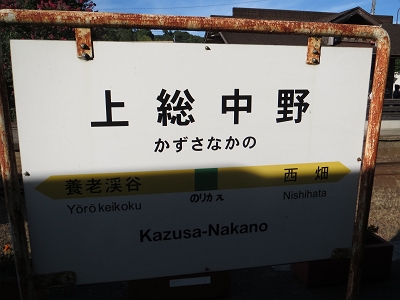 | 上総中野駅 | 上総中野 駅名標 いすみ鉄道のものですが、 次の小湊鉄道の駅の養老渓谷も書かれています。 |