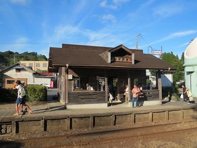 | 館山駅 南欧風の駅舎が特徴です。 | 館山駅に到着です。 |